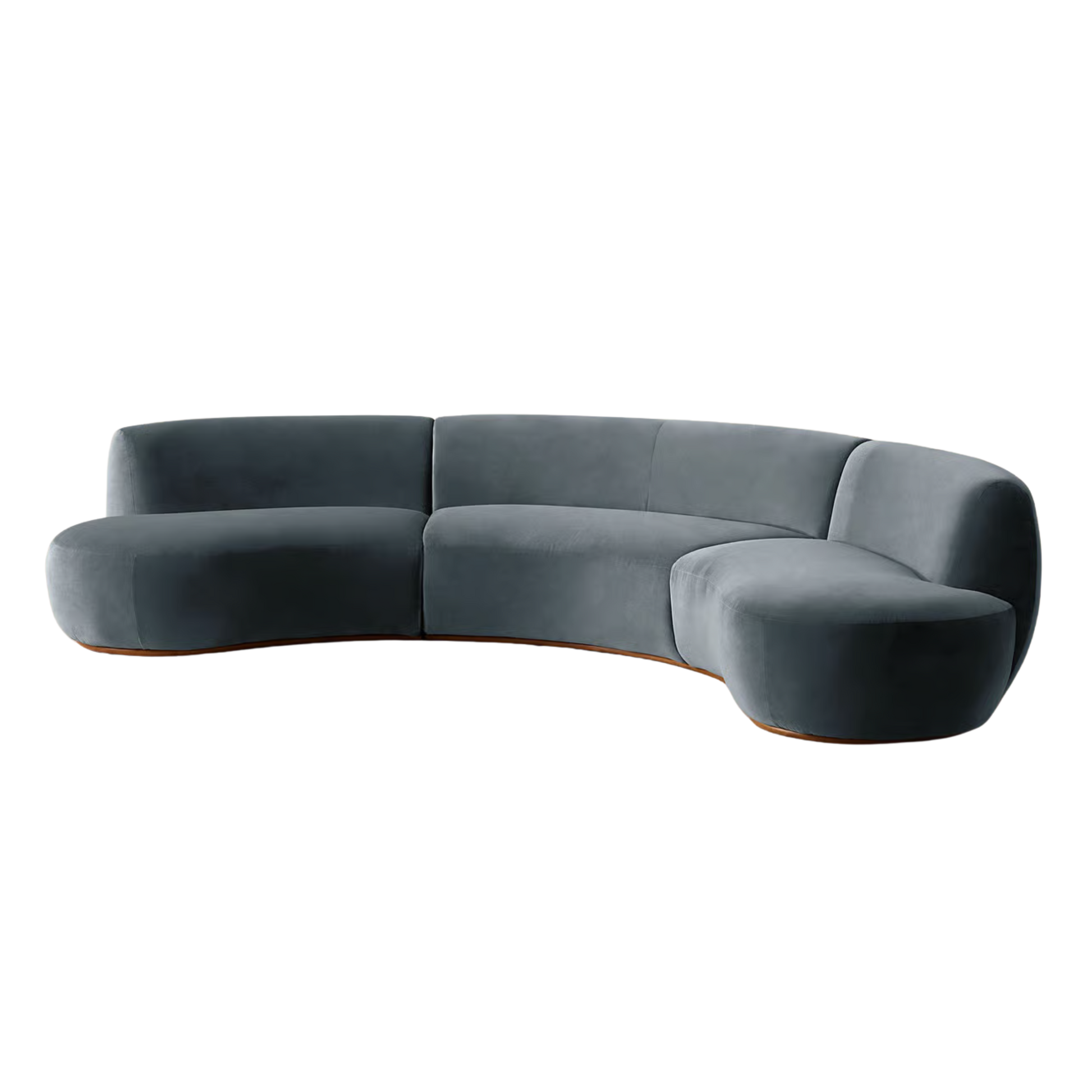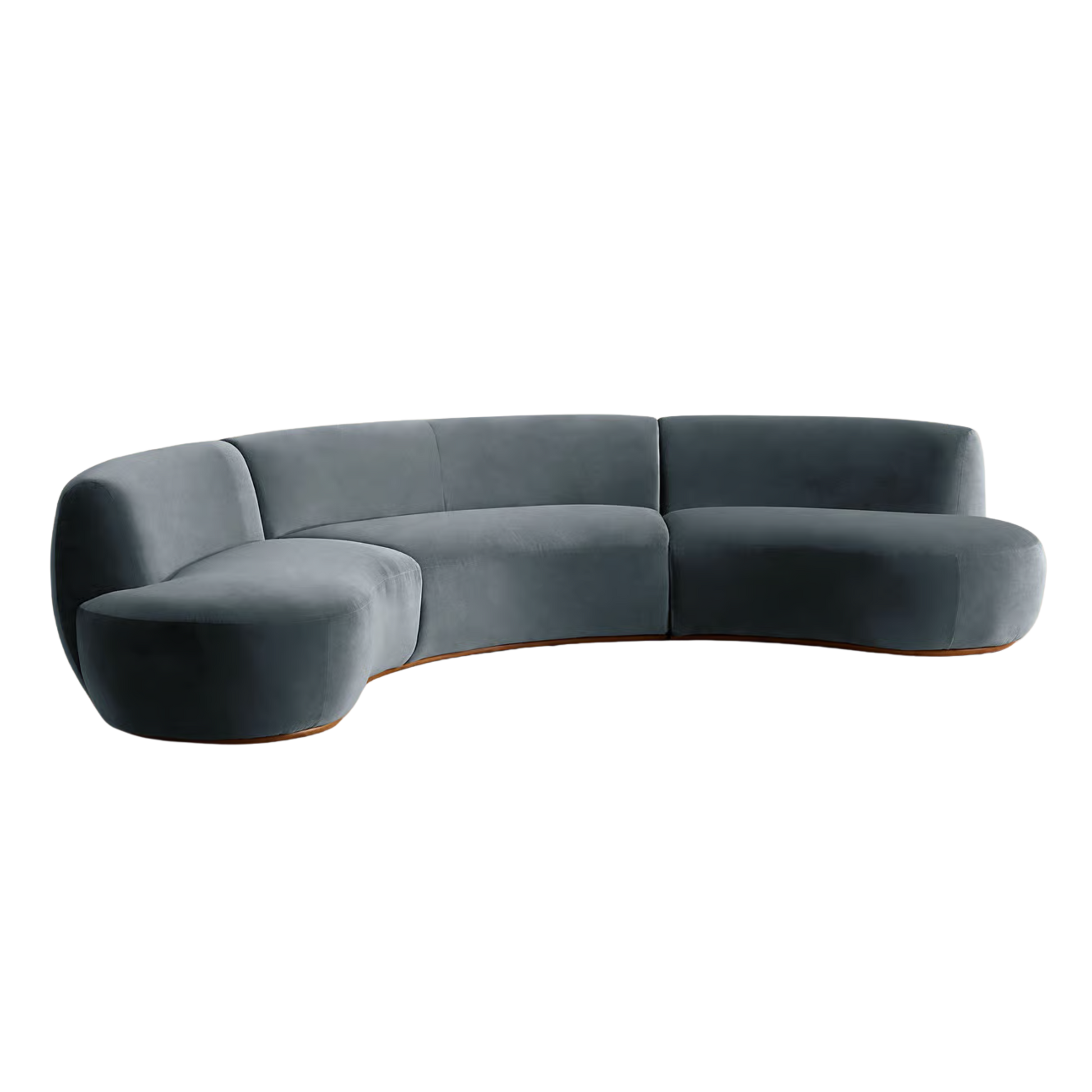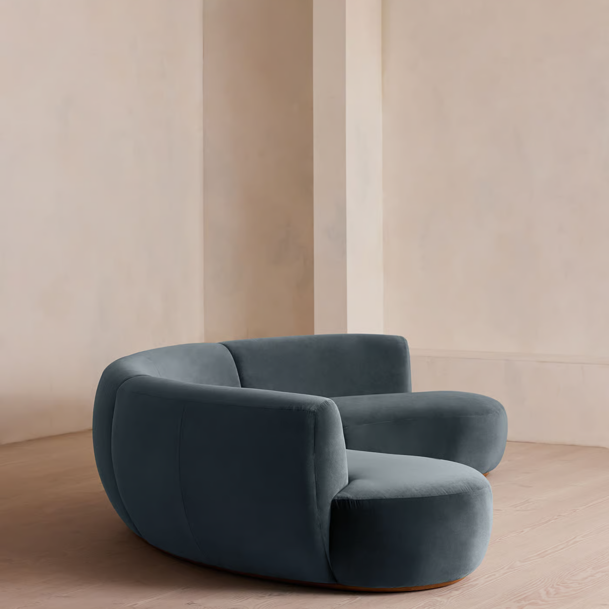A sculptural, serpentine modular sofa designed to bring warmth, movement, and elevated comfort into modern living spaces. The Aline Serpentine Sectional features a smooth, curved silhouette upholstered in rich velvet, creating an inviting shape that enhances interior design layouts and encourages sociable, relaxed living. Its modular form allows flexible arranging, making it a standout piece for organic modern homes, sophisticated home decor, curated furniture shoplists, and contemporary living room styling.