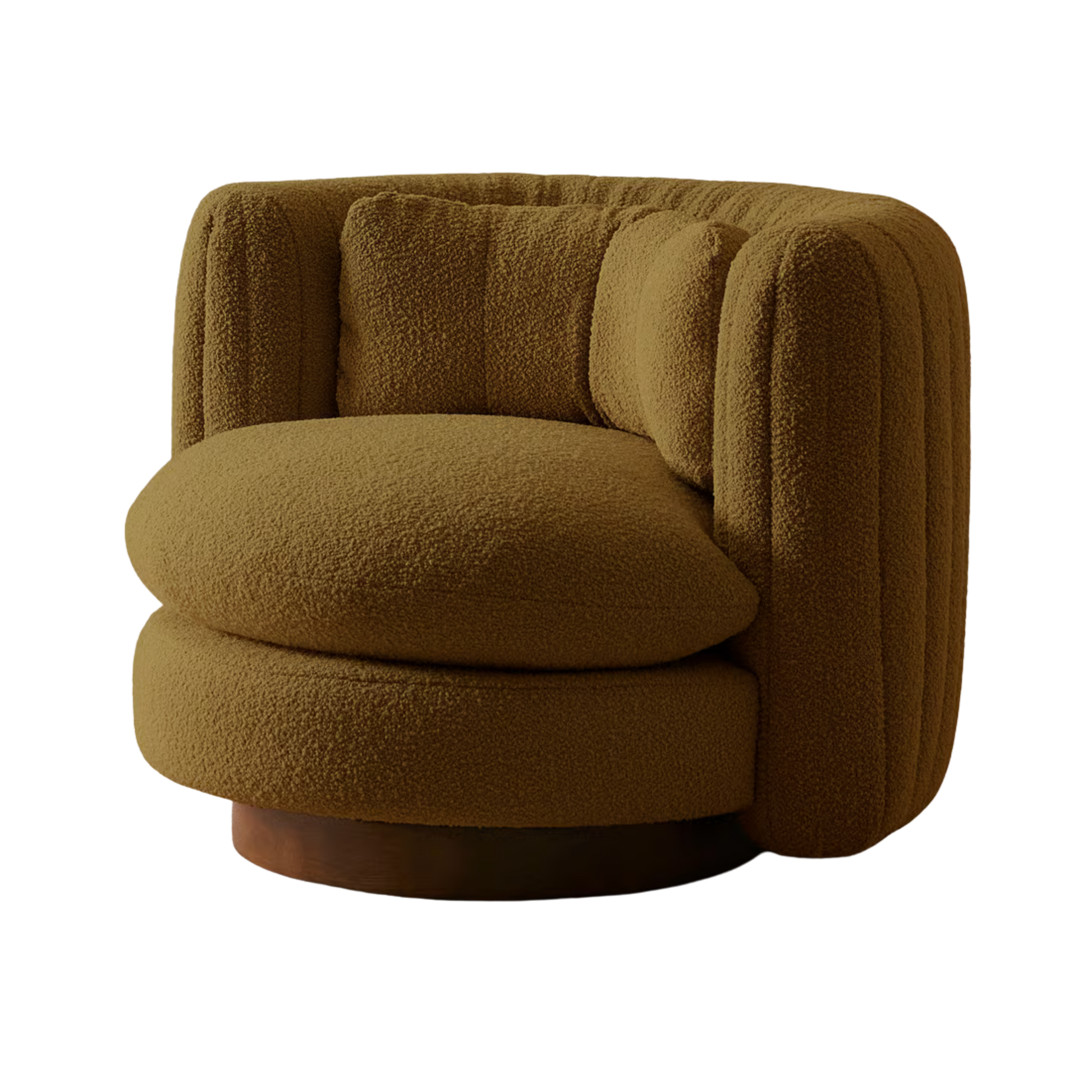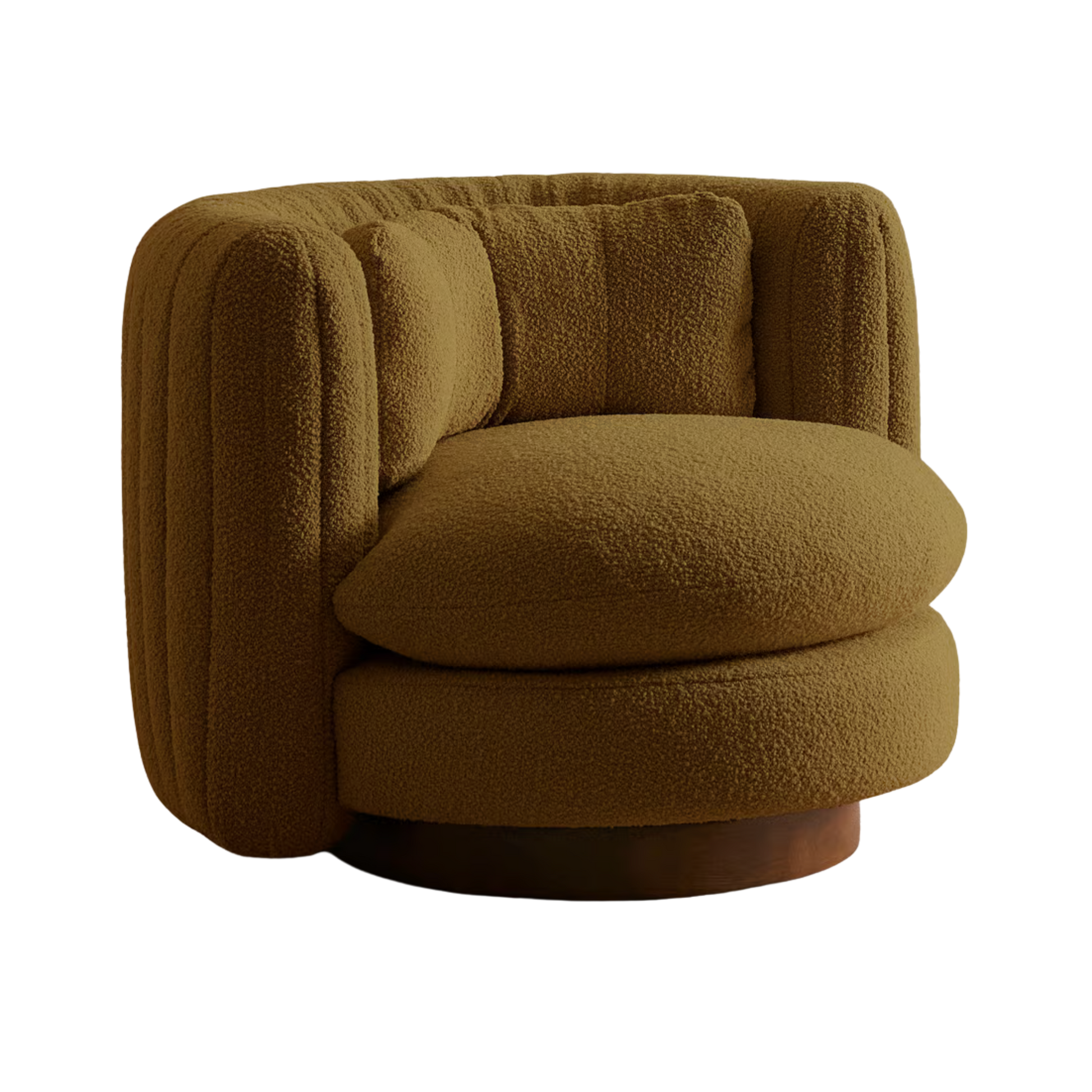 The Soho Home Vivienne Armchair in Textured Wool Boucle brings soft sculptural elegance to any modern interior. Designed with a cocooning, oversized silhouette, this elevated take on the classic tub chair blends comfort, texture, and contemporary design. Inspired by the interiors of White City House, the chair features rich boucle upholstery and a smooth swivel base, making it perfect for conversational living spaces, reading corners, and refined home styling. Its organic curves and tactile finish add warmth and dimension to interiors while delivering timeless designer appeal.