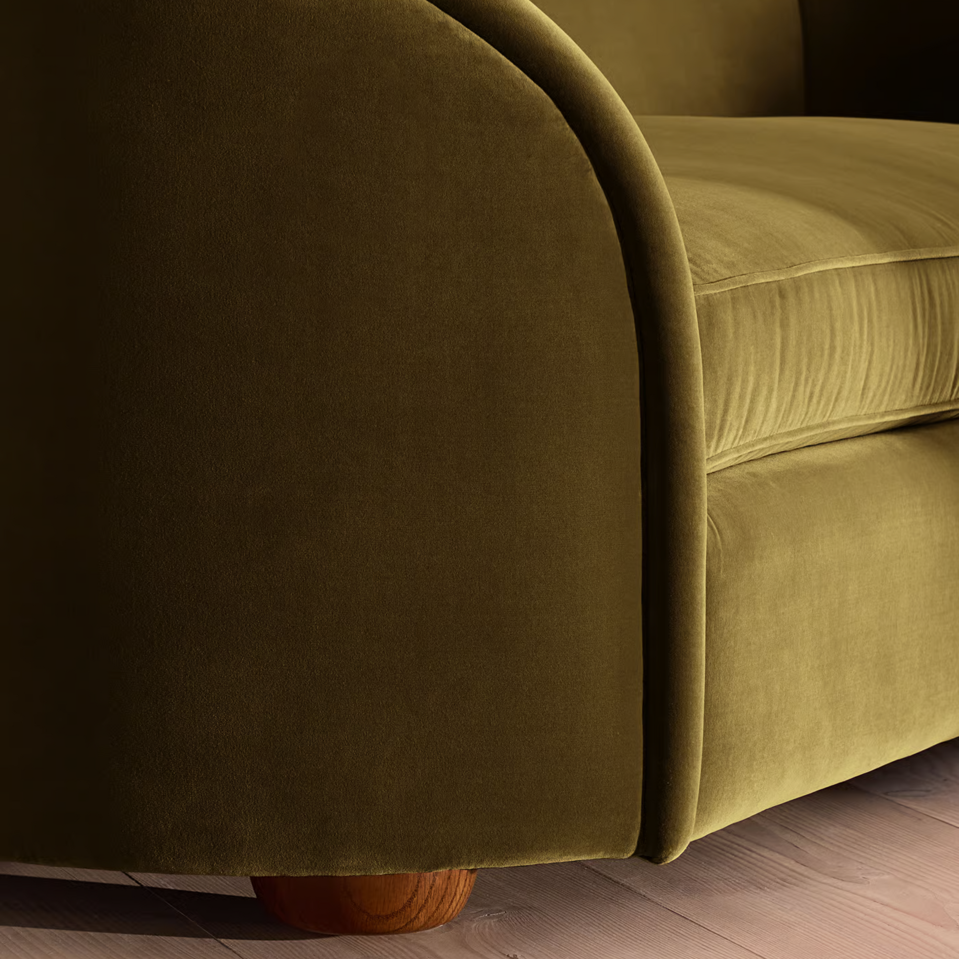 A sculptural three-seater sofa designed with a curved, cocooning silhouette that brings softness and elegance into any modern interior. The Conall Sofa blends minimalist lines with rounded armrests and seamless upholstery, creating a calm, elevated presence in the living room. Its velvet finish and fluid form make it a standout piece for organic modern design, warm neutral spaces, curated furniture shoplists, and elevated interior styling.